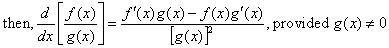 Notice that the derivative of a quotient of functions is not just the quotient of their derivatives; the derivative is somewhat more complex. That is,